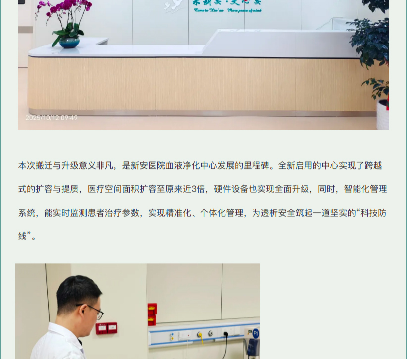 为全方位提升专科诊疗实力,切实满足区域内患者日益增长的就医需求,经过精心筹备与建设,我院血液净化中心正式搬迁至M6栋新门诊楼三楼,并全面投入使用!自此开启了一段全新的医疗服务征程。...